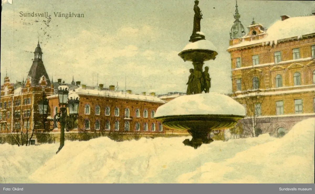 Titel: Vykort med vintermotiv över Vängåvan i Sundsvall.