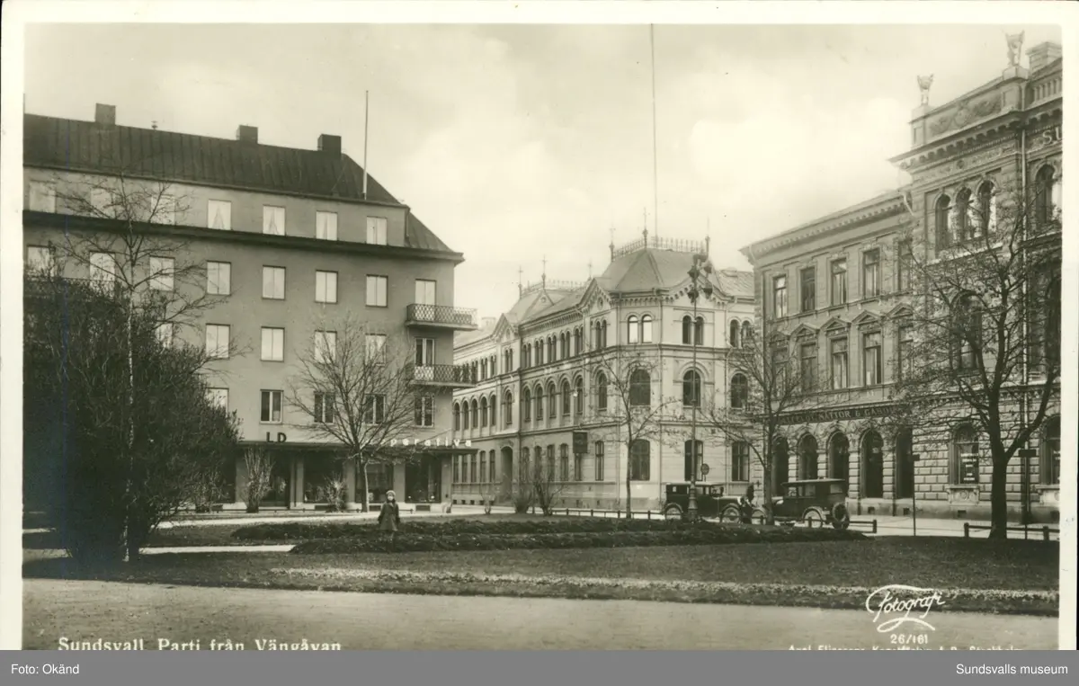 Vykort med motiv över parti av Vängåvan i Sundsvall.