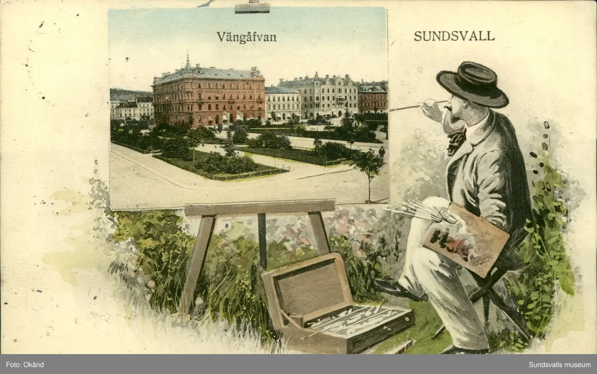 Vykort med motiv över Vängåvan i Sundsvall.