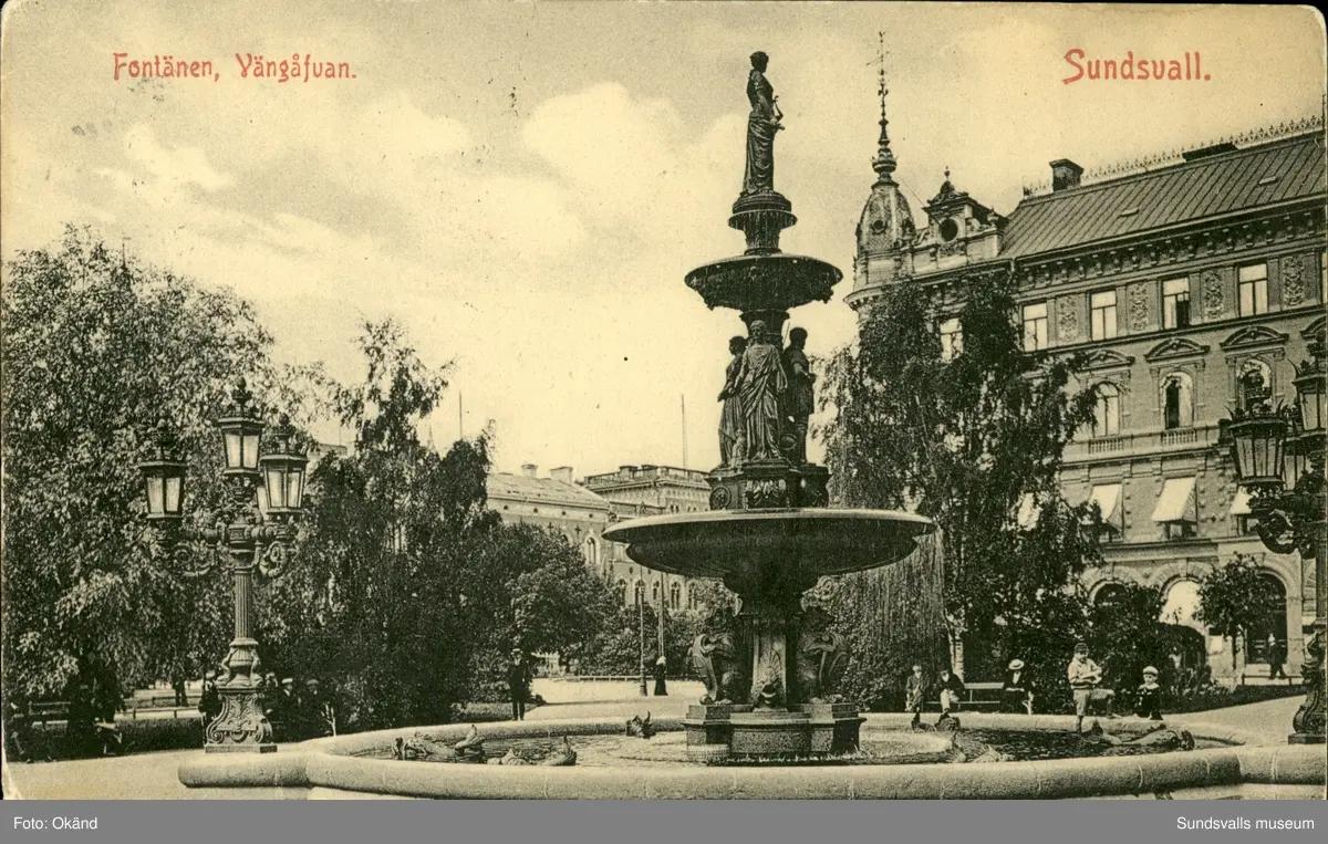 Vykort med motiv över Vängåvan i Sundsvall.