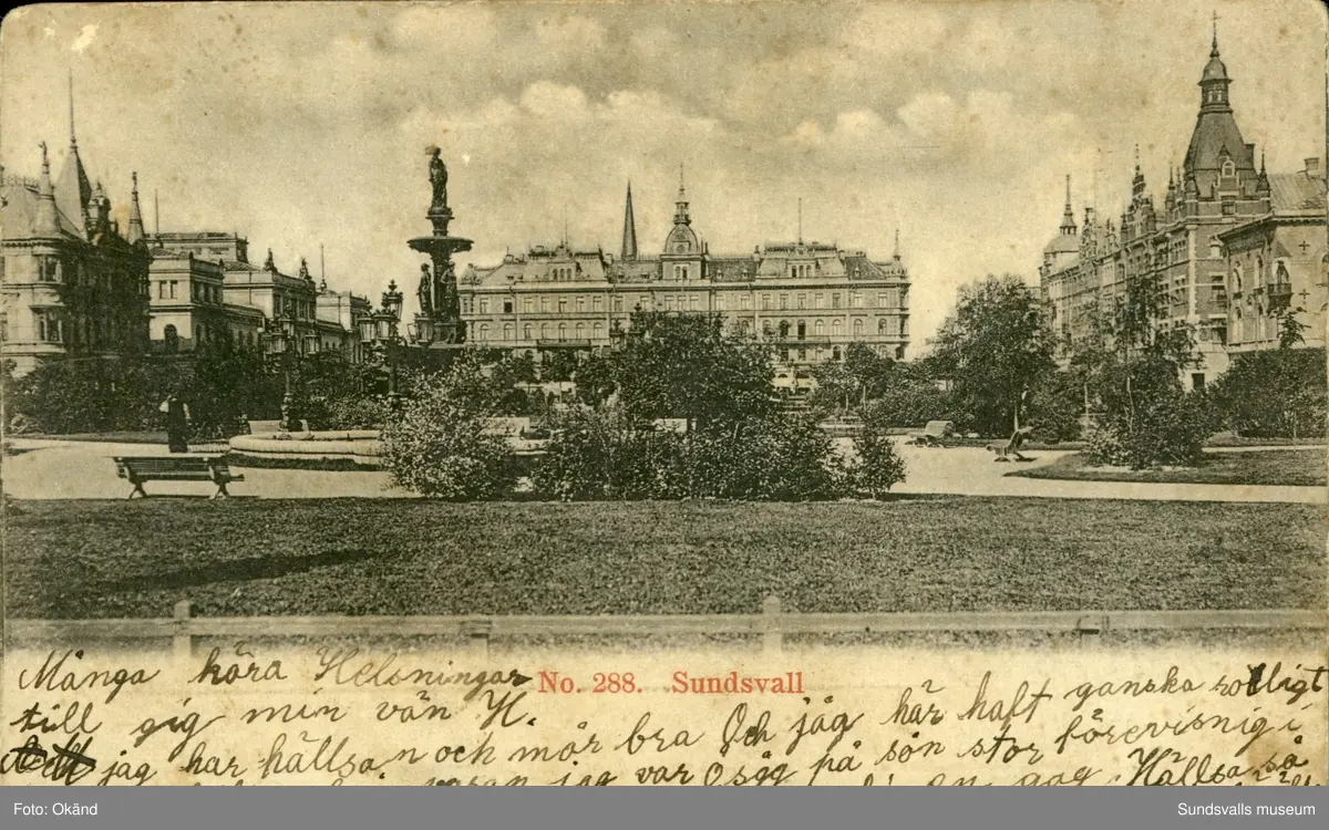 Vykort med motiv över Vängåvan i Sundsvall.
