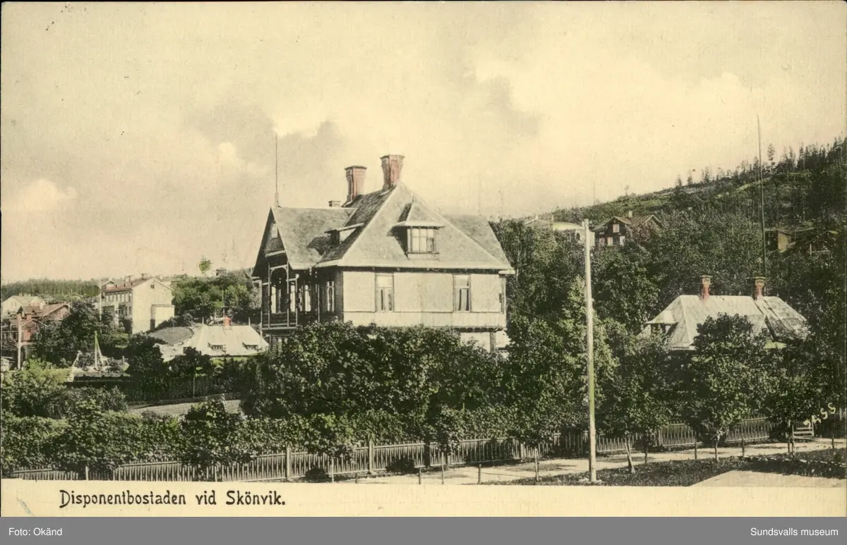 Vykort med motiv över Disponentbostaden i Skönvik.