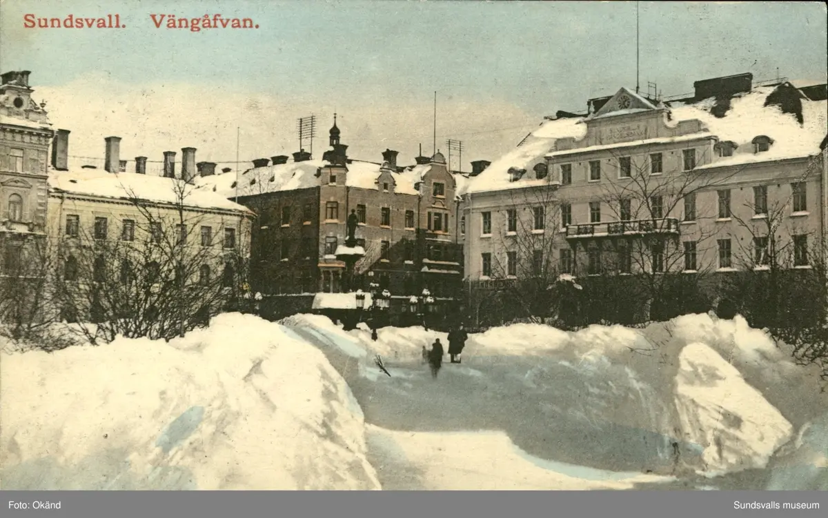 Vykort med vintermotiv över Vängåvan i Sundsvall.