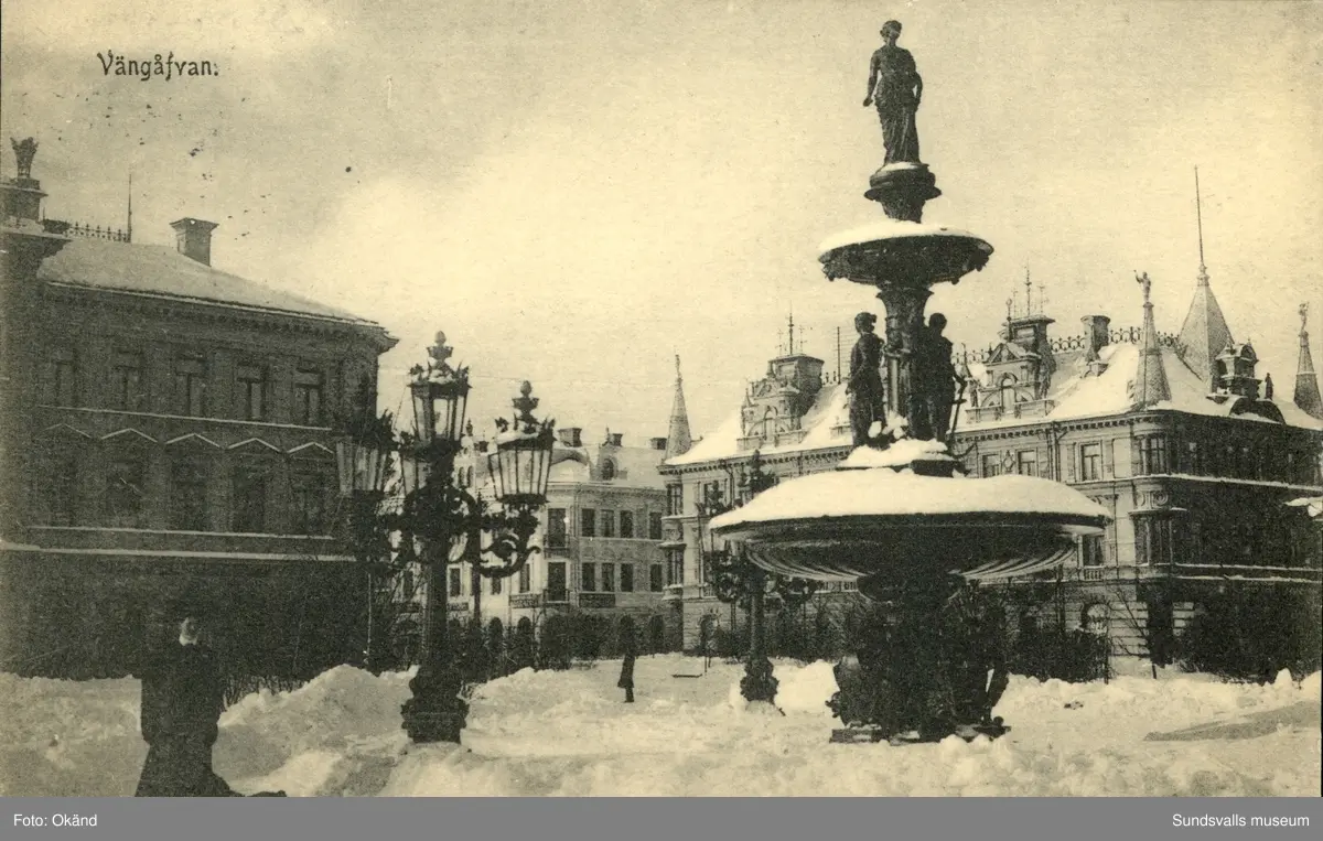 Vykort med vintermotiv över Vängåvan i Sundsvall.