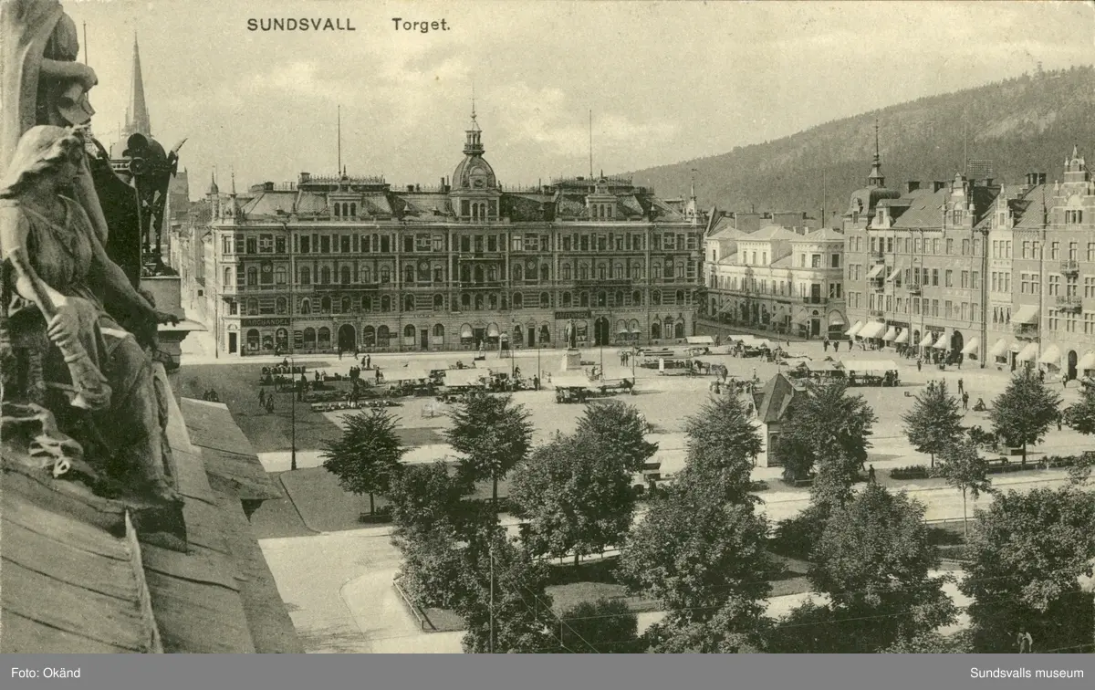 Vykort med motiv över Stora torget i Sundsvall.