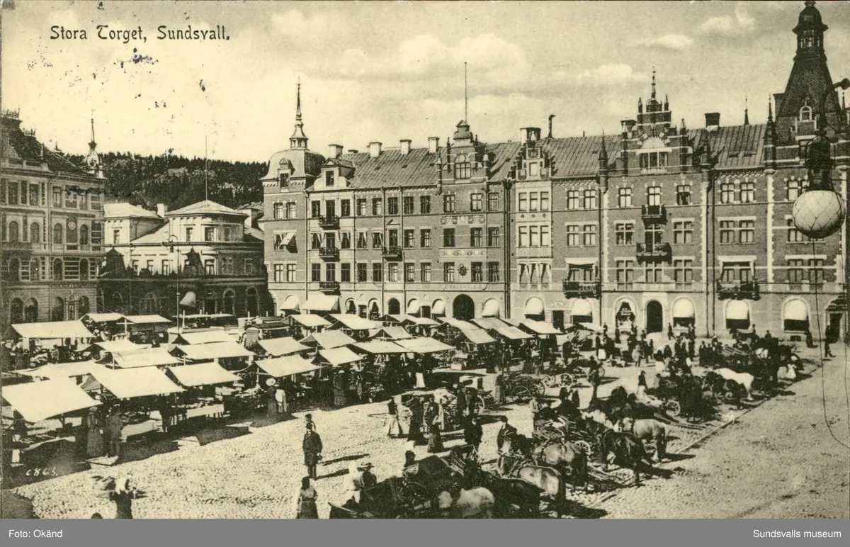 Titel: Vykort med motiv över Stora torget i Sundsvall.