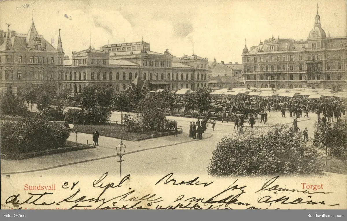 Titel: Vykort med motiv över Stora torget i Sundsvall.