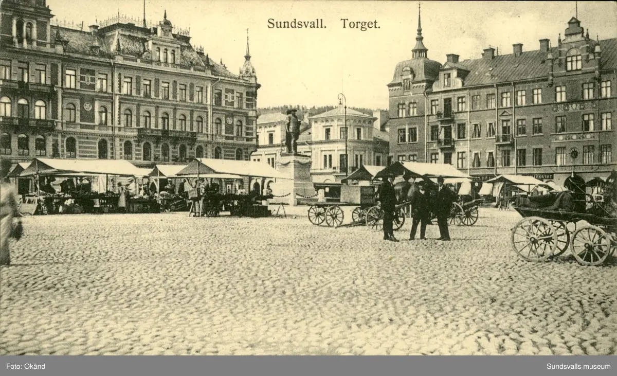 Vykort med motiv över Stora torget i Sundsvall.