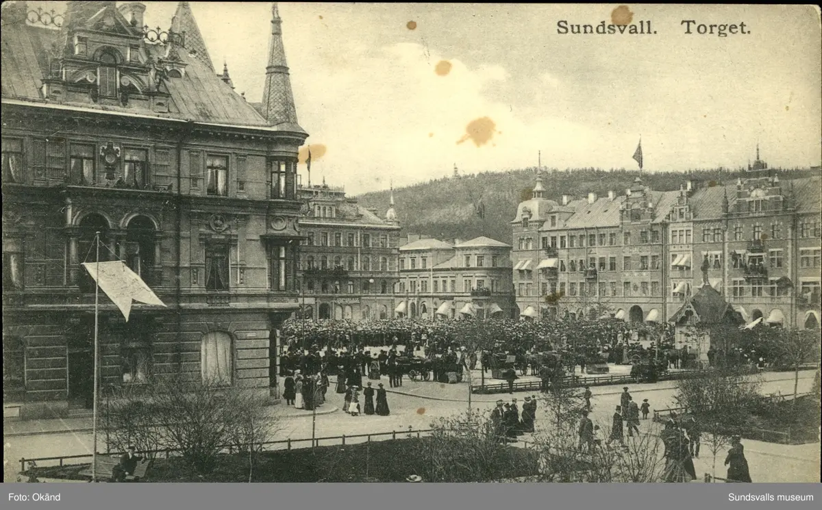 Vykort med motiv över Stora torget i Sundsvall.