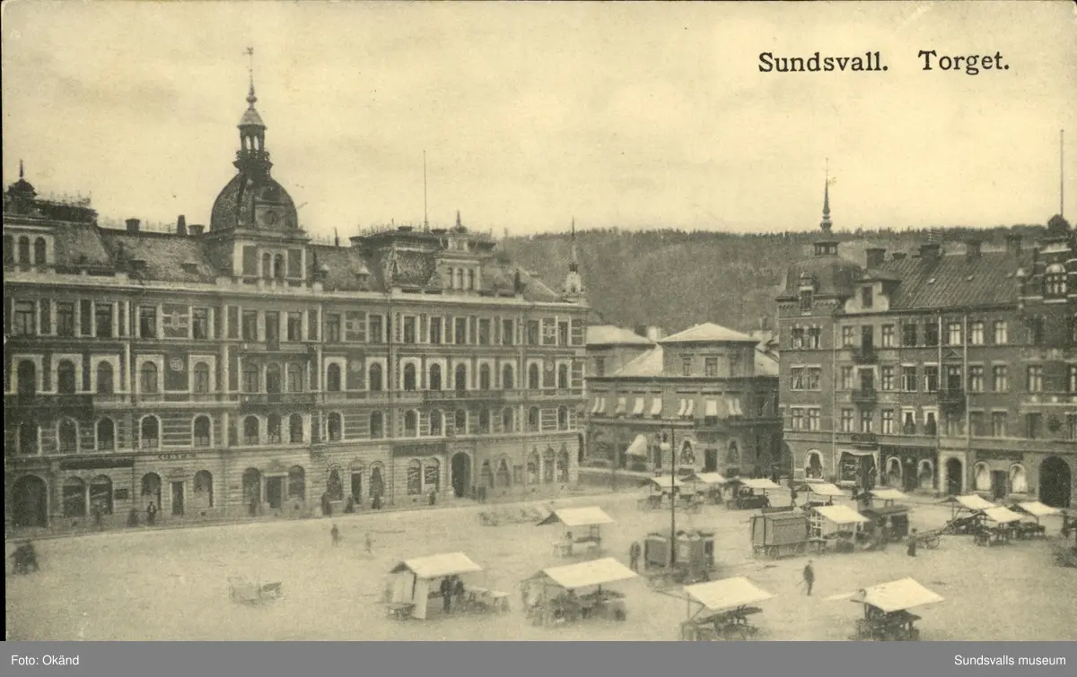 Titel: Vykort med motiv över Stora torget i Sundsvall.