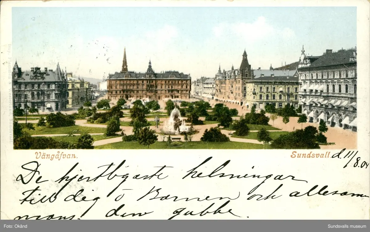 Titel: Vykort med motiv över Vängåvan i Sundsvall.