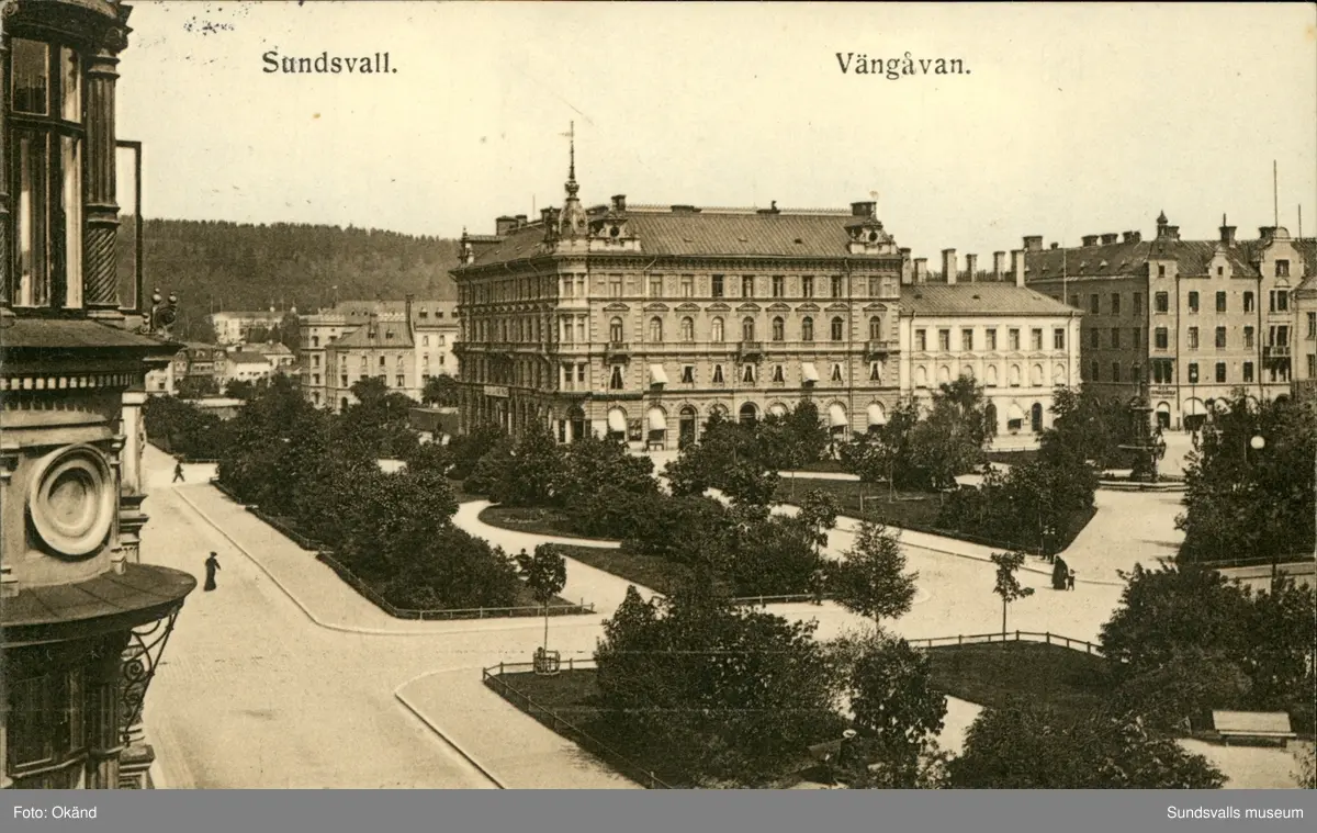 Vykort med motiv över Vängåvan i Sundsvall.