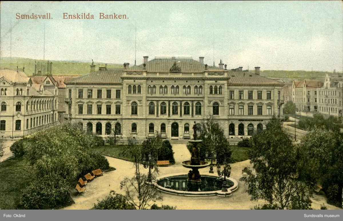 Vykort över Vängåvan och Sundsvalls Enskilda bank.