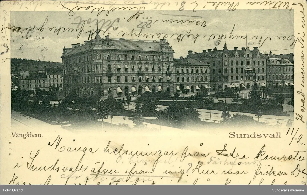 Vykort över Esplanden och Vängåvan i Sundsvall.