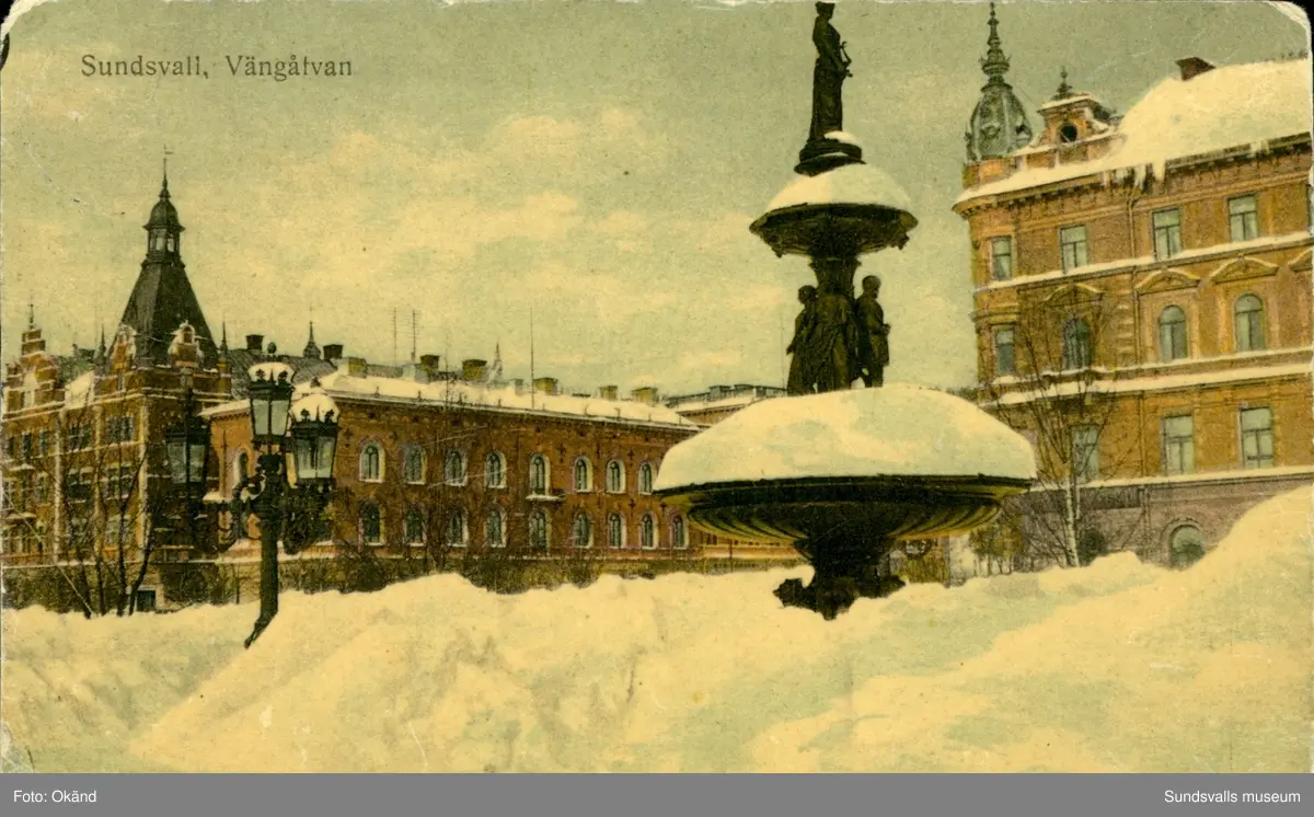 Vykort med vintermotiv över Vängåvan i Sundsvall.