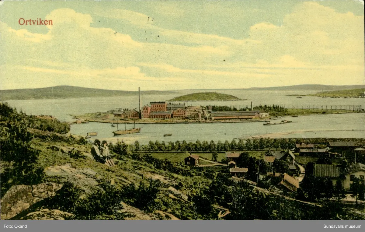 Vykort med motiv över Ortvikens fabriksanläggning i Sundsvall.