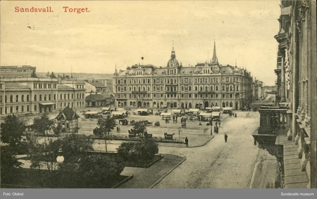 Vykort med motiv över Stora torget i Sundsvall.