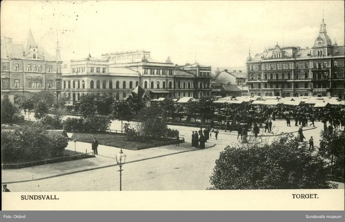 Titel: Vykort med motiv över Stora torget i Sundsvall.