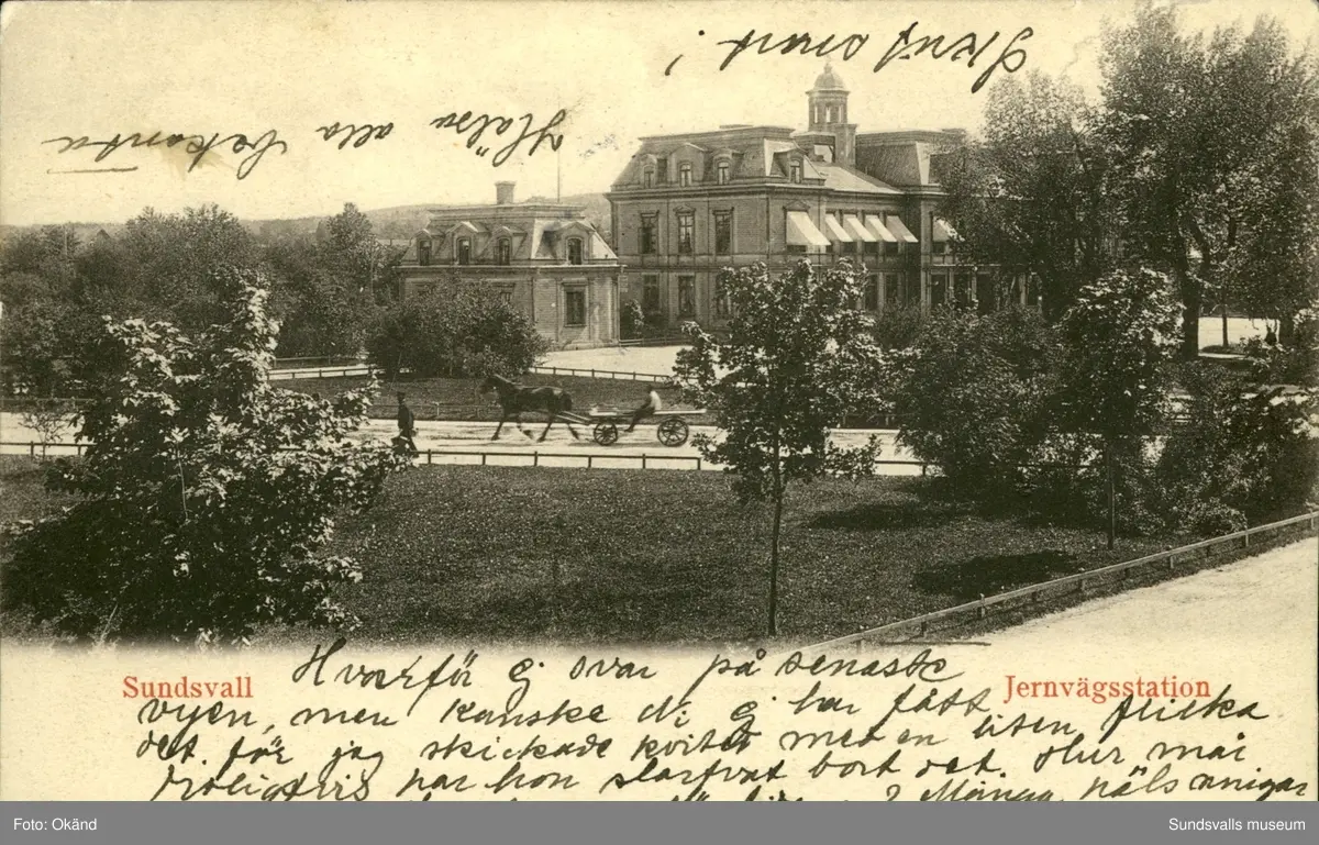 Vykort med motiv över järnvägsstationen i Sundsvall.