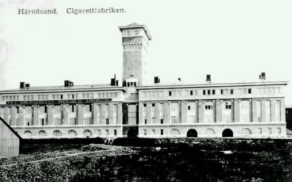 Tobaksmonopolet. Text på vykortet "Härnösand. Cigarettfabriken".