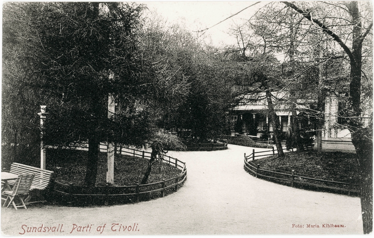 Sommarrestaurangen Tivoli. Tryckt text på vykortet: "Sundsvall, Parti af Tivoli"