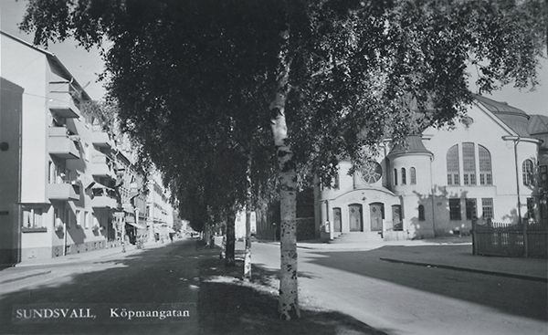 Köpmangatan med björkallé samt Betlehemskyrkan.