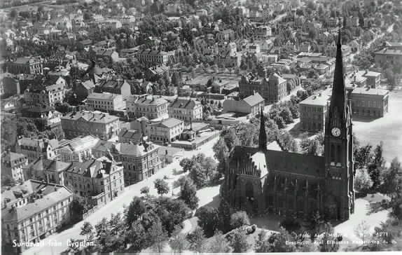 Sundsvall med GA kyrkan och Skolhusallén, flygfoto.
