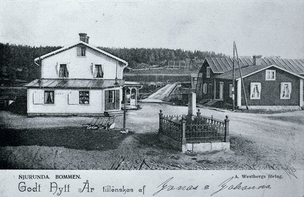 Motiv från Njurundabommen med minnesmärket. Vykort.