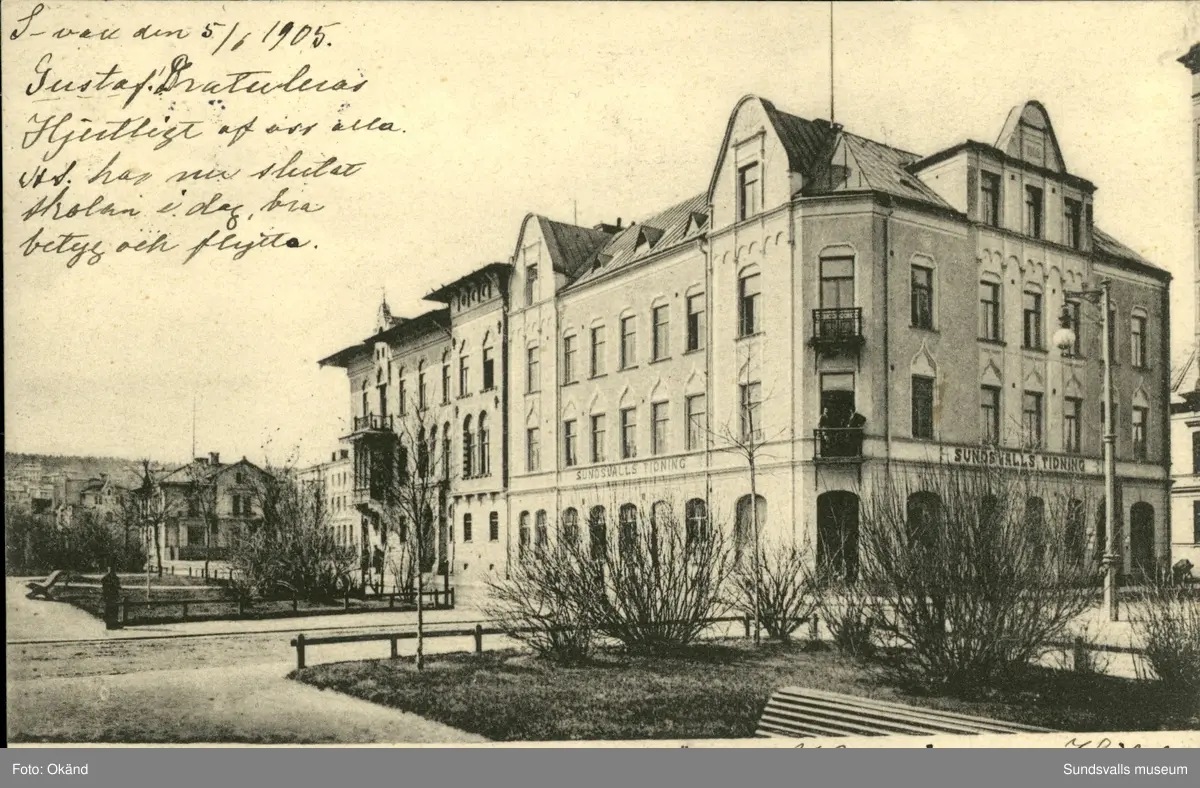 Vykort med motiv över Sundsvalls tidnings V. konsul Gregor Vikströms hus I Sundsvall.