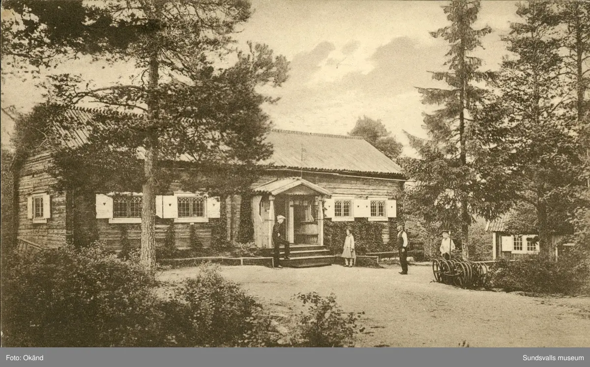Vykort med motiv över Bredsjöstugan på Norra Stadsberget i Sundsvall.