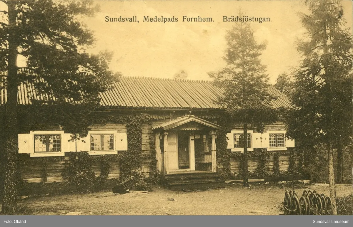 Vykort med motiv över Bredsjöstugan på Norra Stadsberget i Sundsvall.