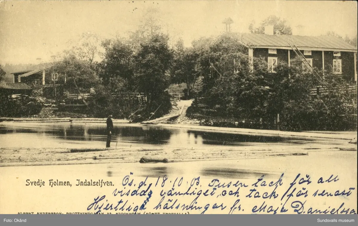 Vykort med motiv över Svedjeholmen i Indalsälven.