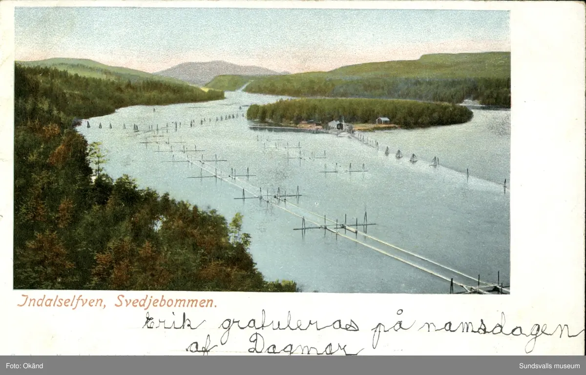 Vykort med motiv över Svedjebommen i Indalsälven.