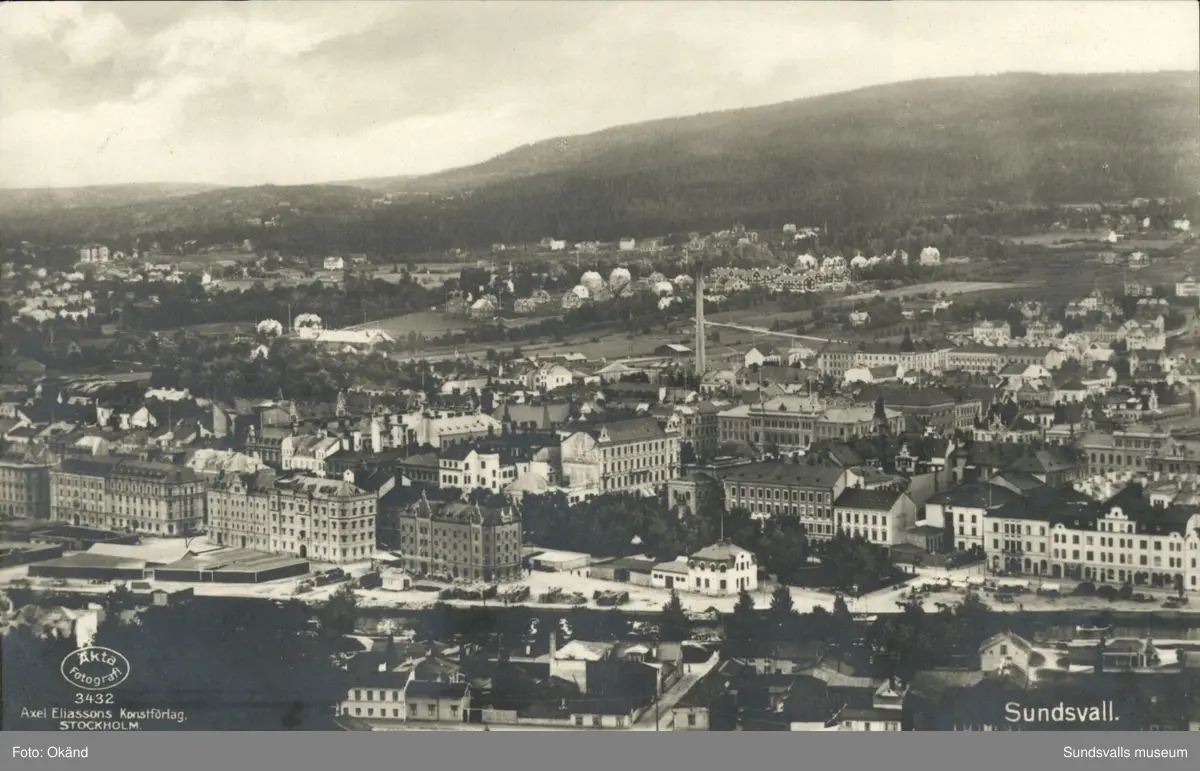 Vykort med motiv över Sundsvall.