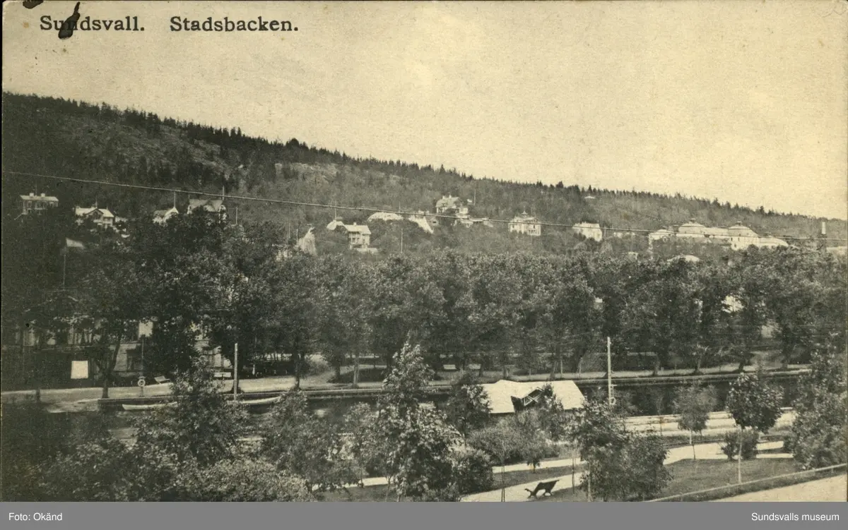 Vykort med motiv över Stadsbacken i Sundsvall.