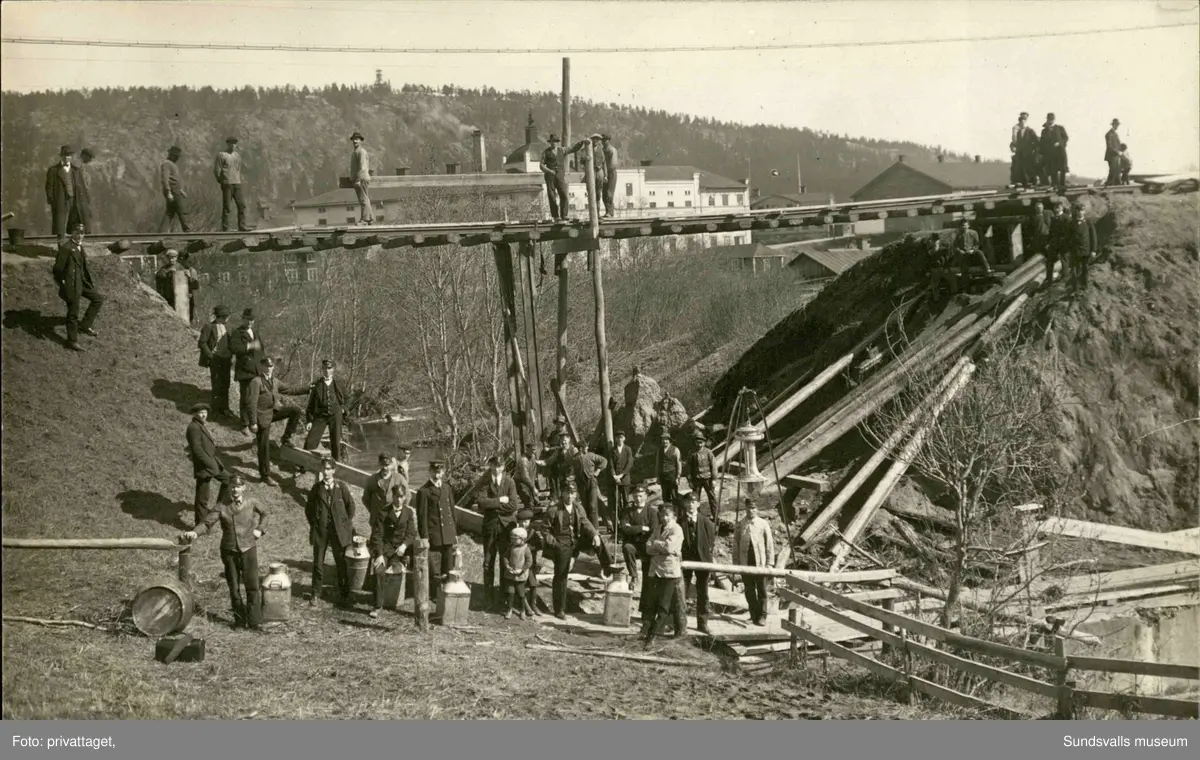 Vykort med motiv över skadorna efter översvämningarna 1919.