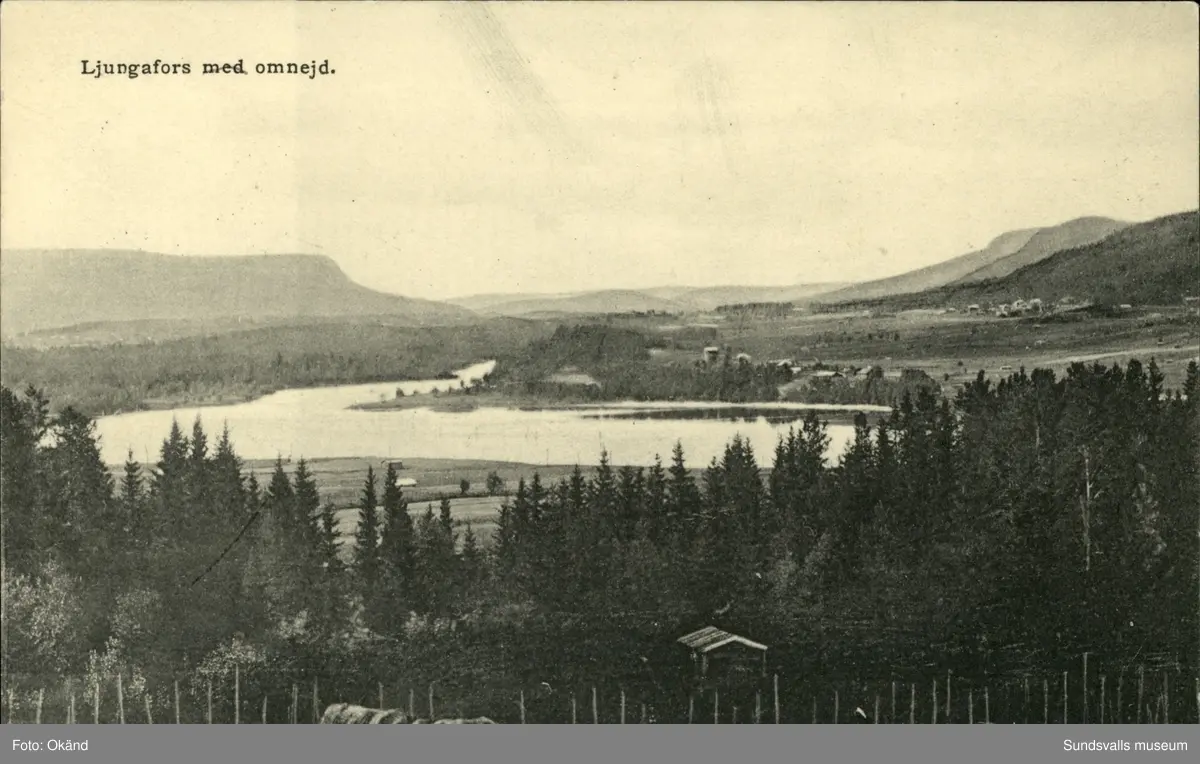 Vykort med motiv över Ljunganfors med omnejd.