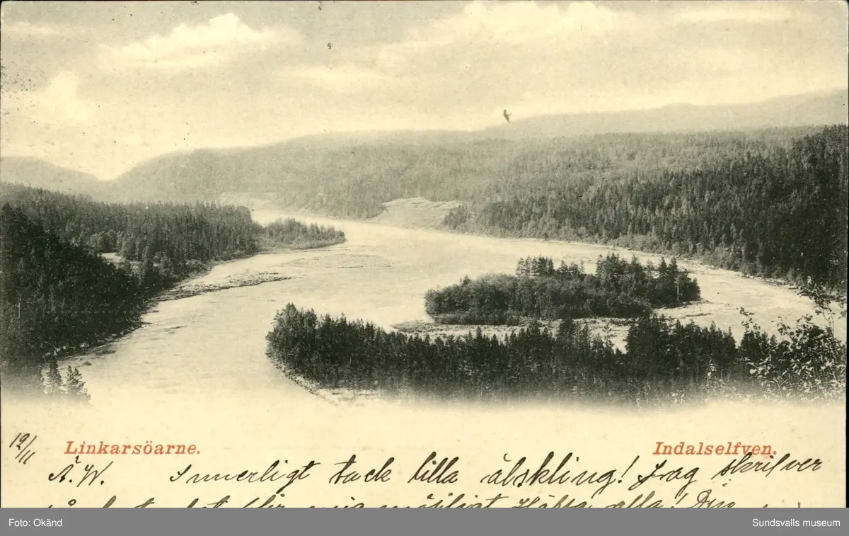 Vykort med motiv över Linkarsöarna i Indalsälven.