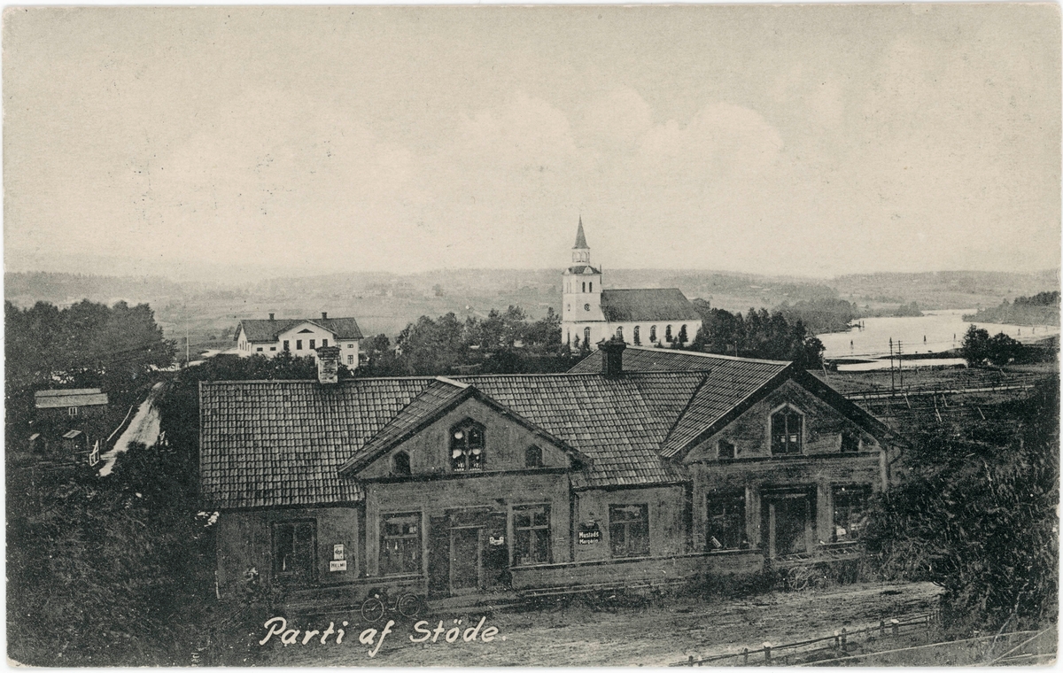 "Parti av Stöde", taget mot söder. Butik i förgrunden. Vykort.