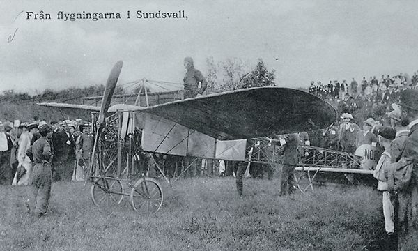Vykort från flygbaronen Carl Cederströms uppvisningar i Sundsvall 6-8 augusti 1911. Vykort.