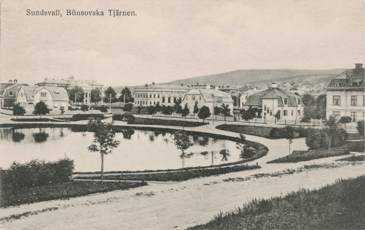Bildtext till vykort "Sundsvall. Bünsowska Tjärnen."