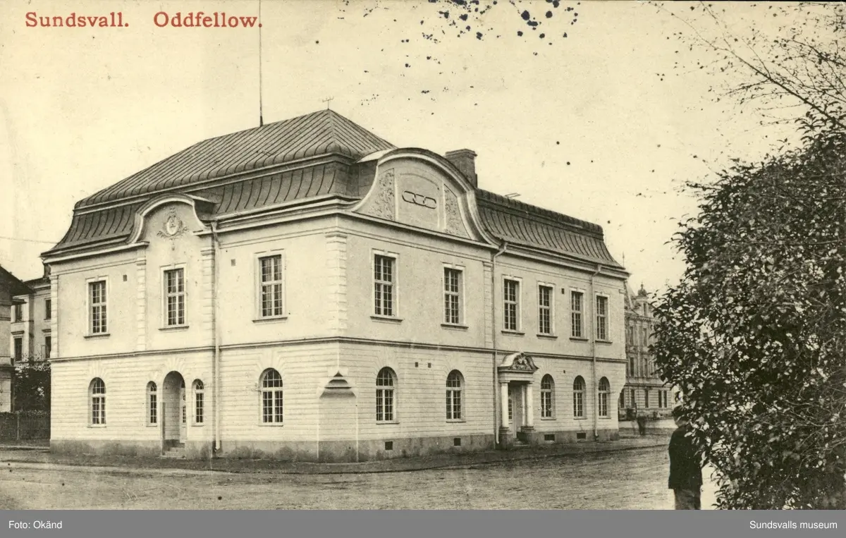 Vykort med motiv över Oddfellow-huset i Sundsvall.