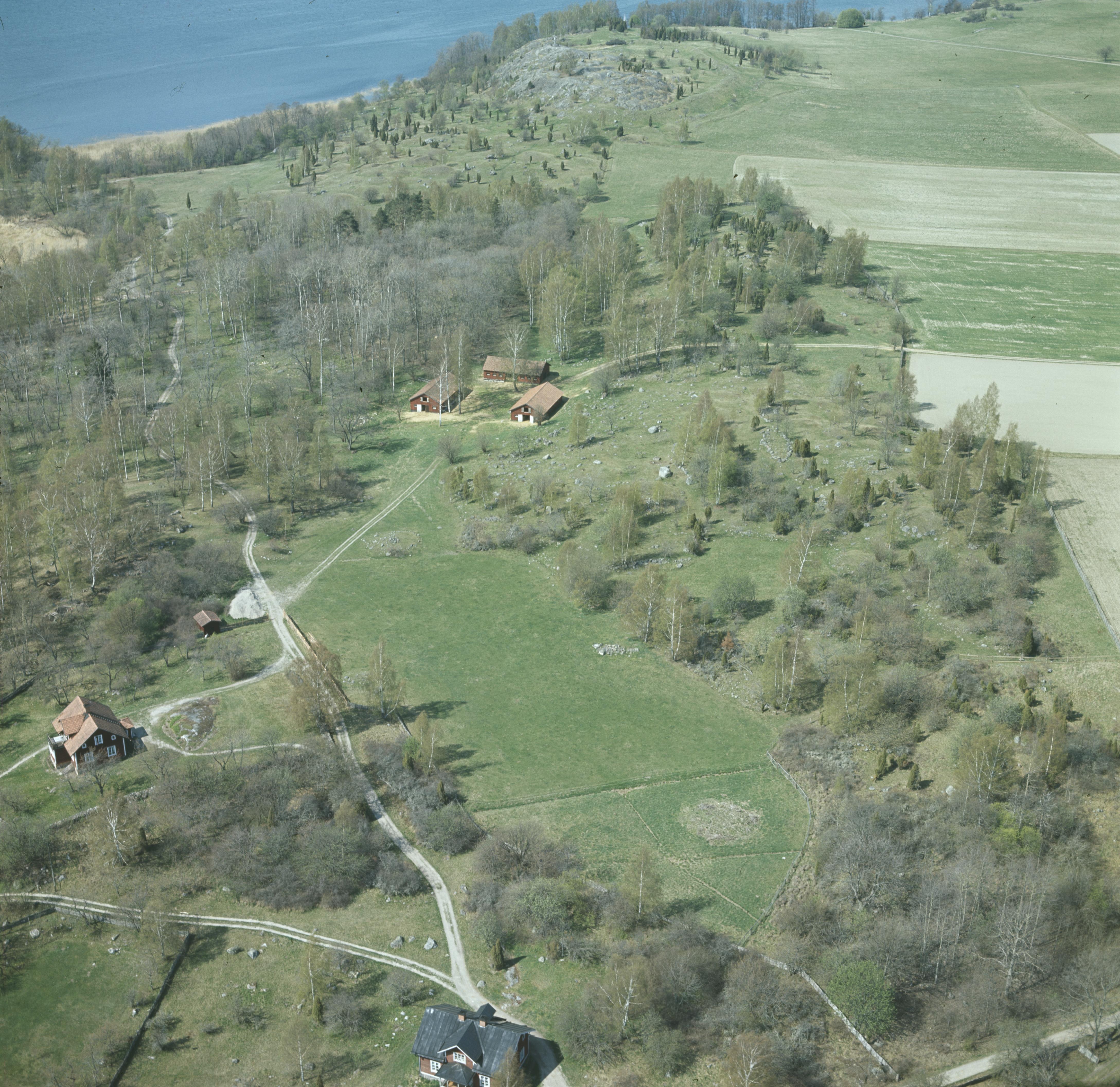 Björkö från söder med Höglund och Kvarnbacka i förgrunden och Borgberget i bakgrunden.