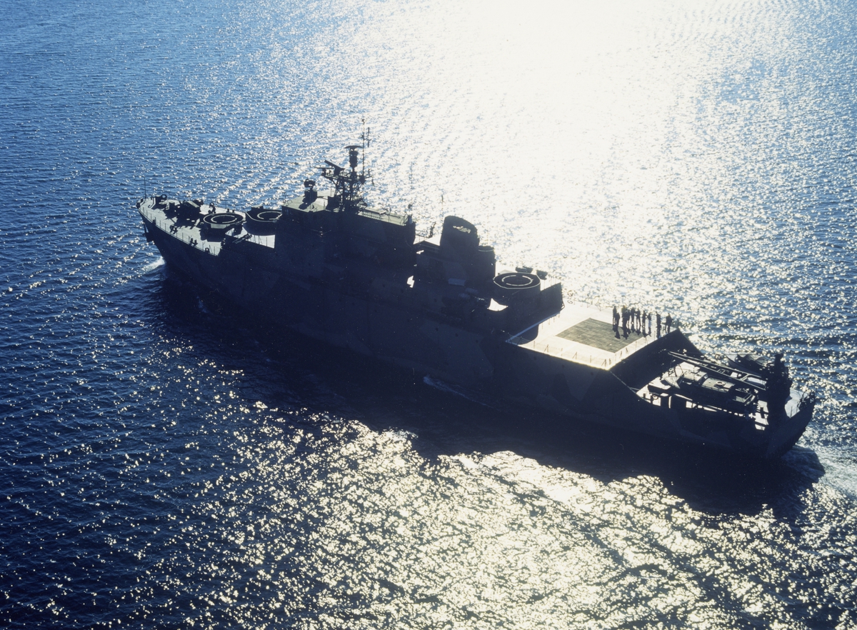 Titel: Foto taget från sidan på minfartyget Älvsborg.