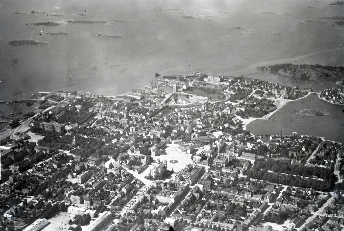 Flygfoto över Trossö Karlskrona mot sydväst. 1920-1944
