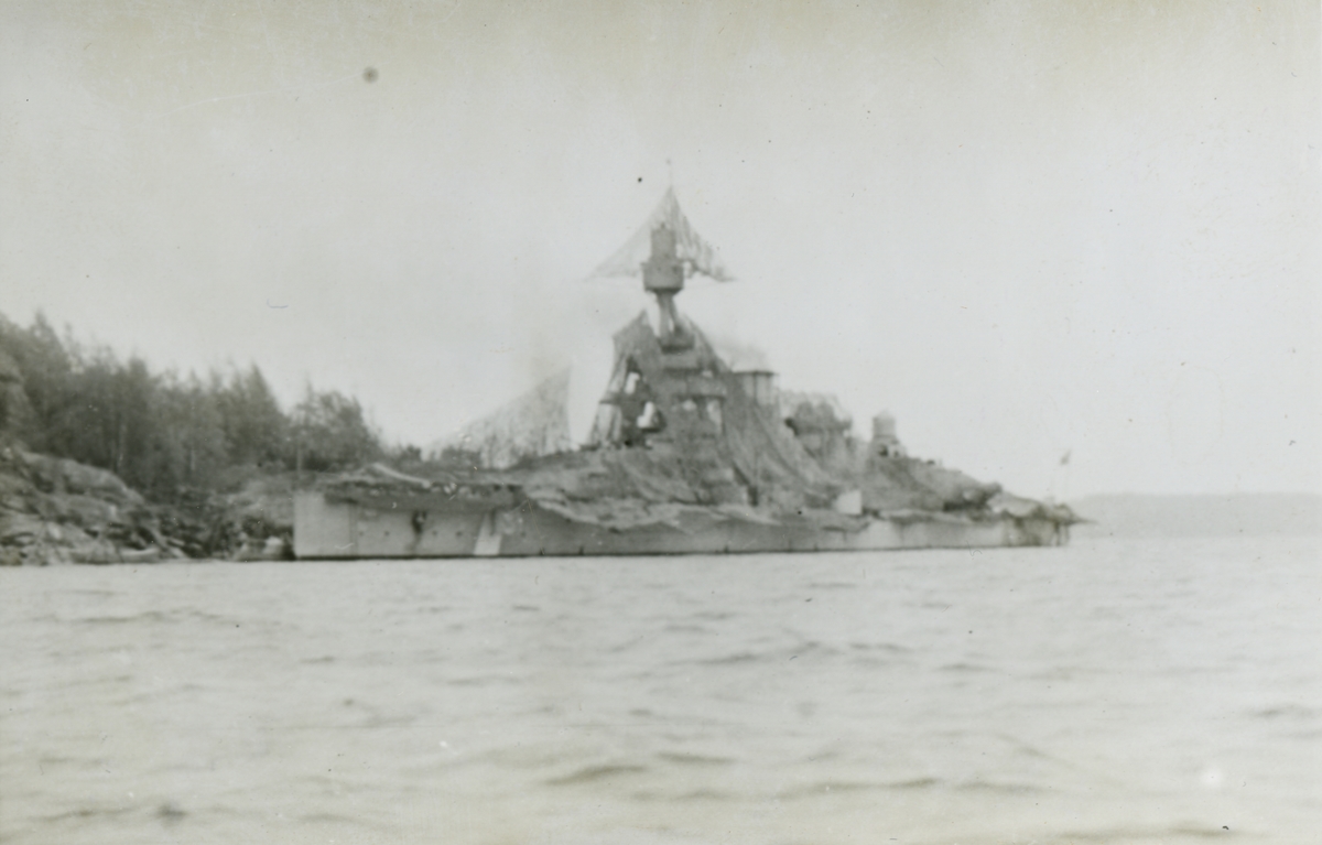 Pansarskeppet Gustav V med kamouflagenät