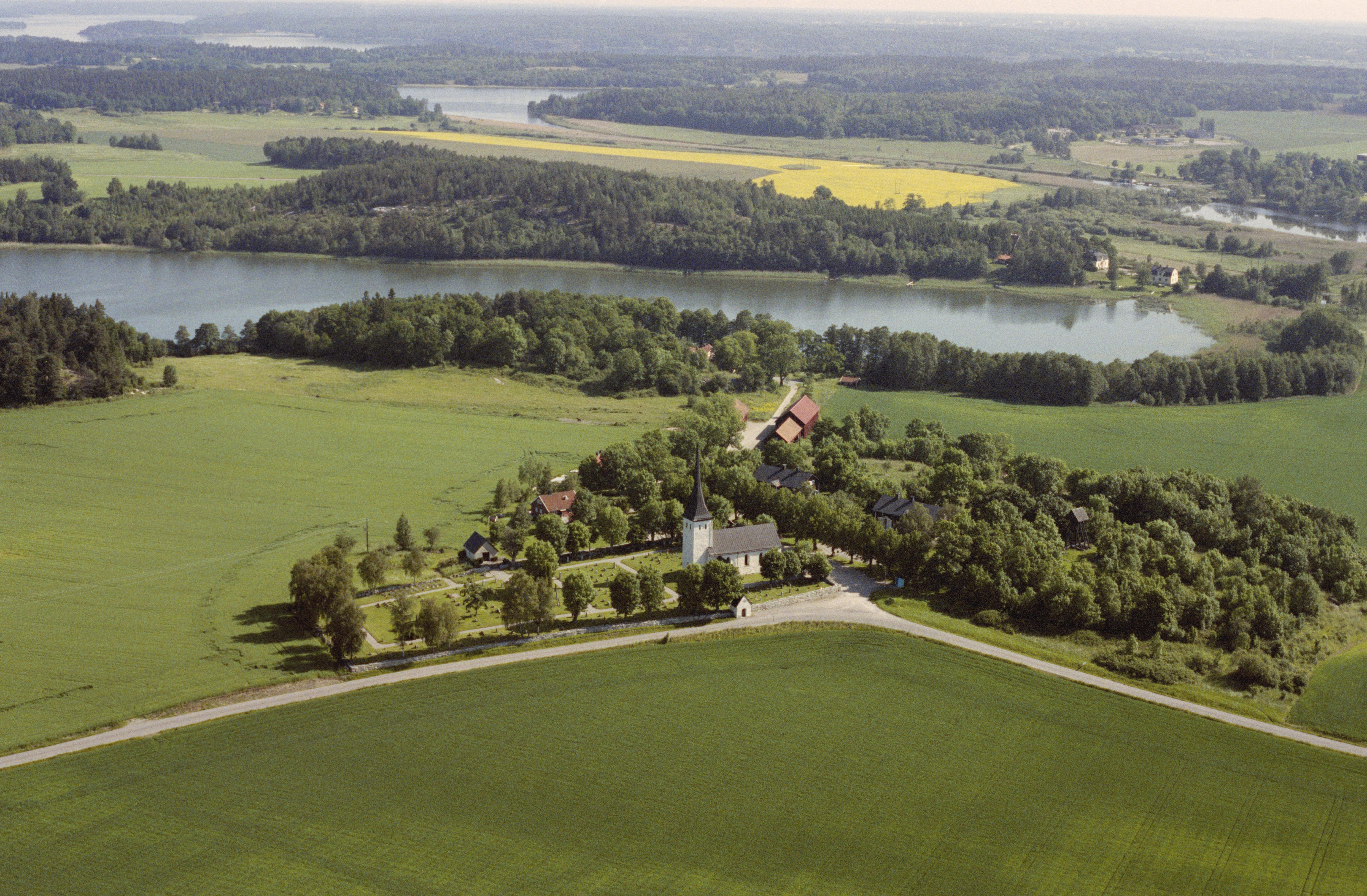Sånga kyrka i bildens mitt. Bilden är tagen mot (väderstreck): N