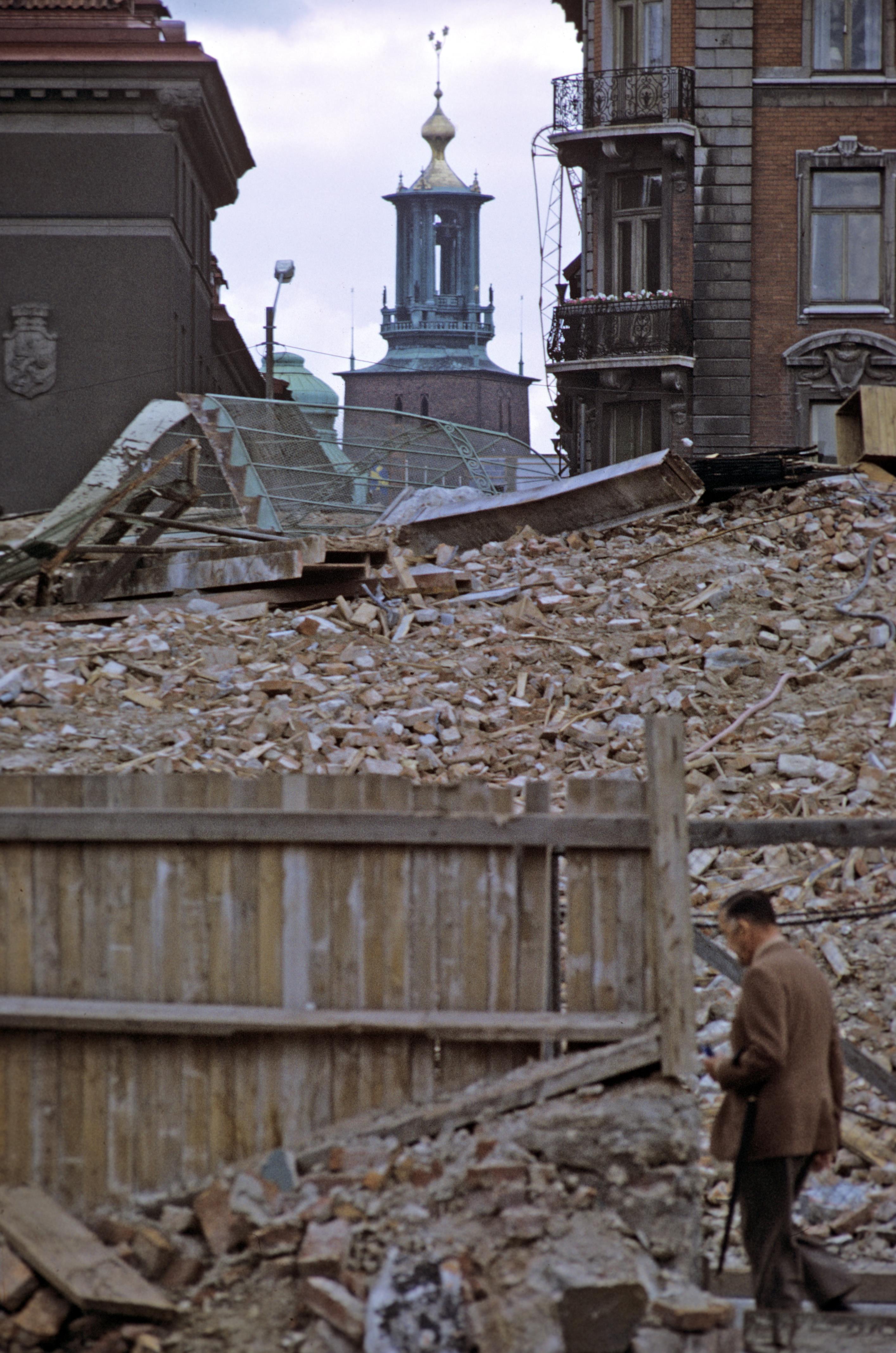"Gropen", område med byggnadsarbeten på Nedre Norrmalm (Gamla Klarakvarteren). Bilden troligen från början av 1970-talet.
