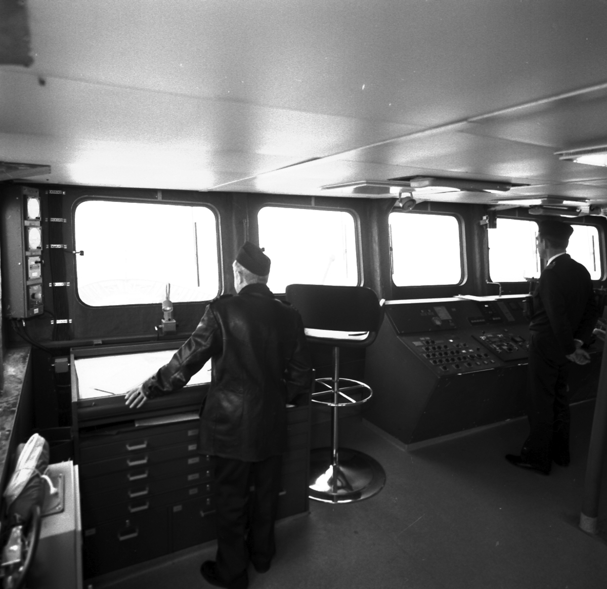 Titel: Carlskrona Interiör av bryggan på minfartyget Carlskrona
