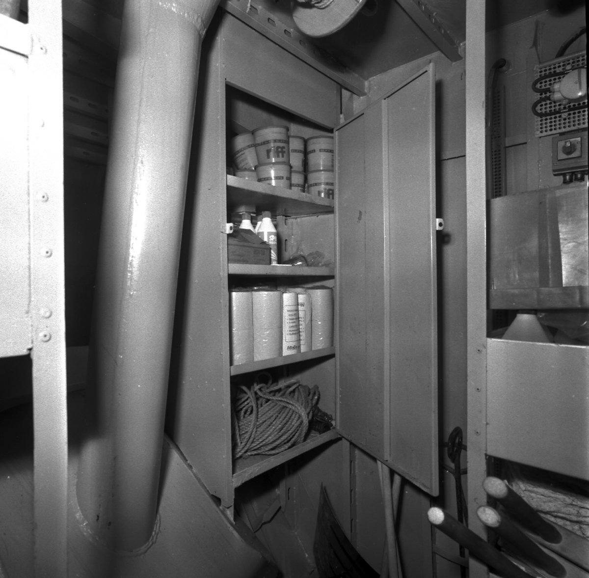 Torpedbåten Piteå, interiör av förrådsutrustning